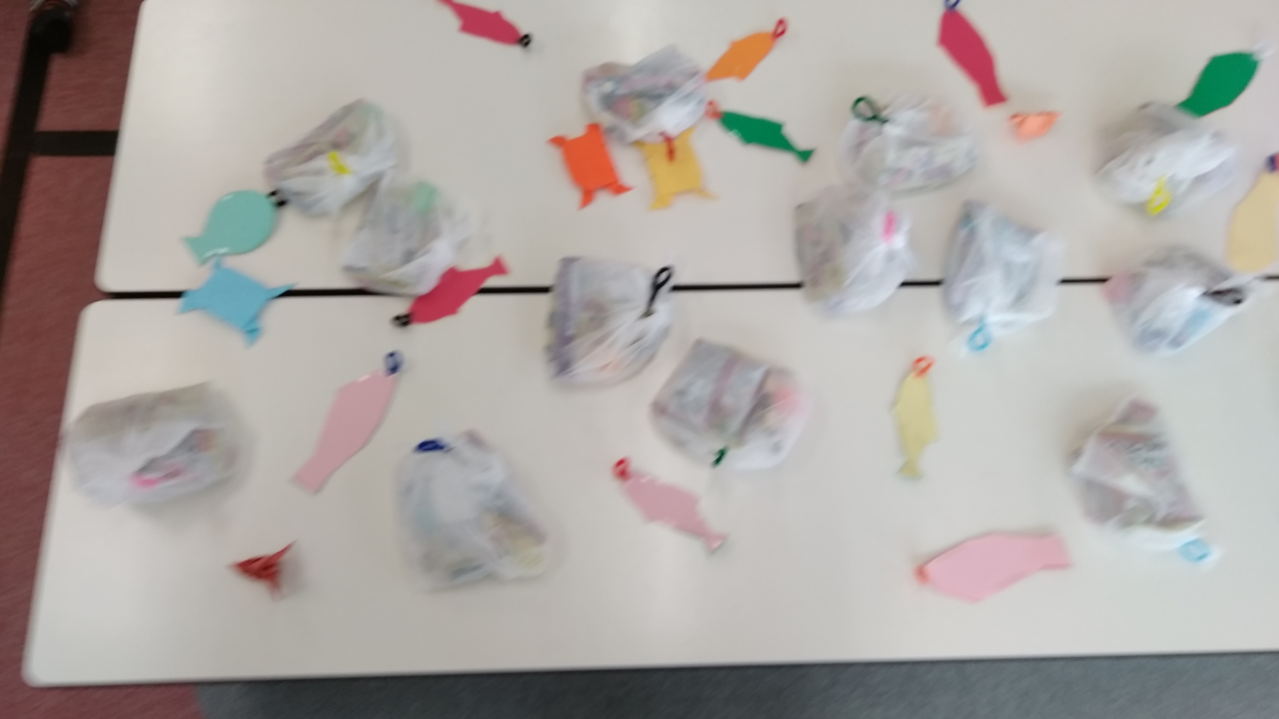 竿を前後左右に動かしたり、ひもの長さを変えてみたりとあえるのお友だちは、みんな上手に釣る為に工夫をしてくれていました。