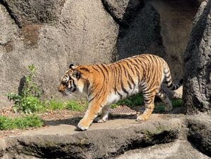 トラはのしのしとゆっくり歩き回っていて
