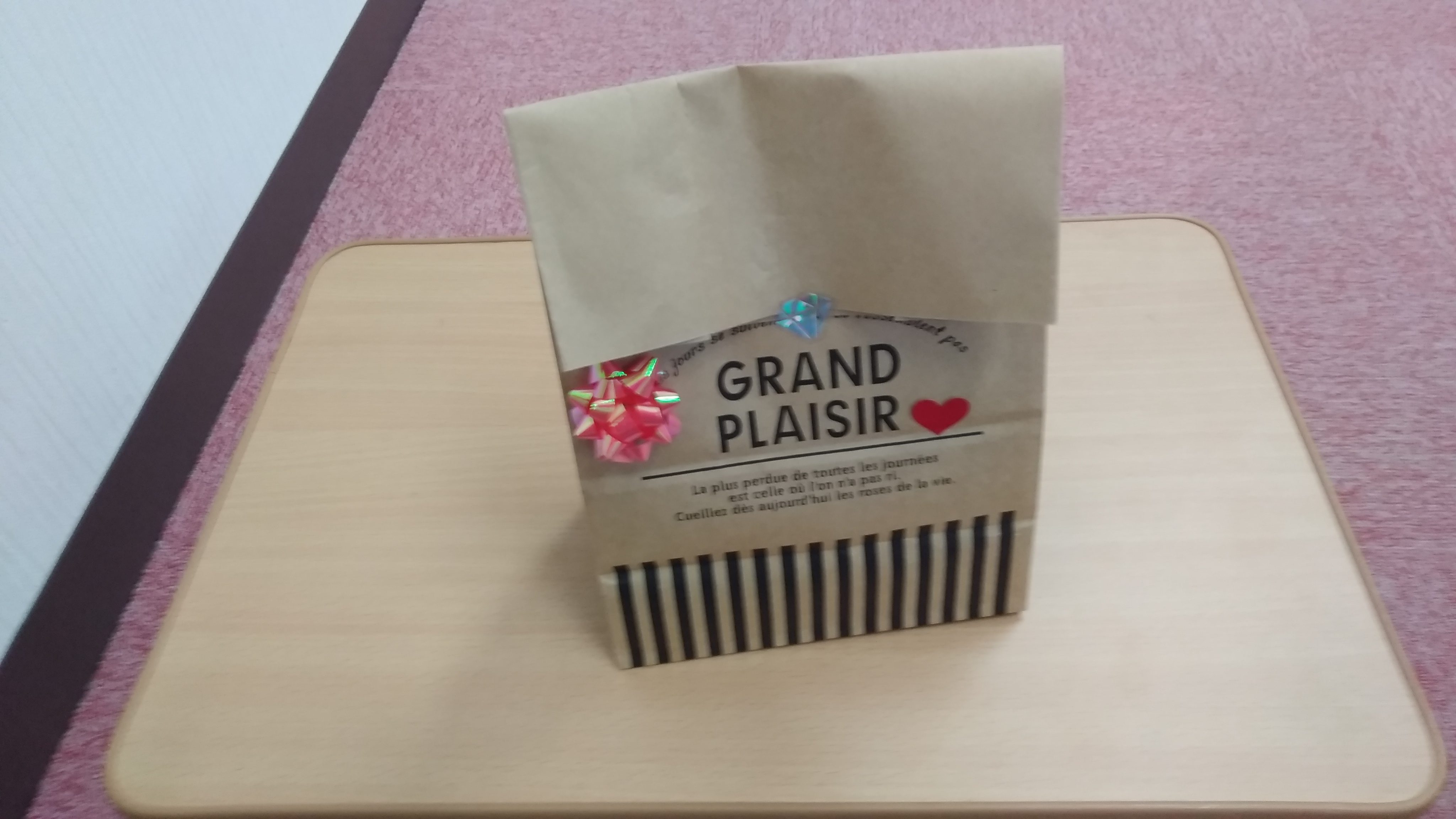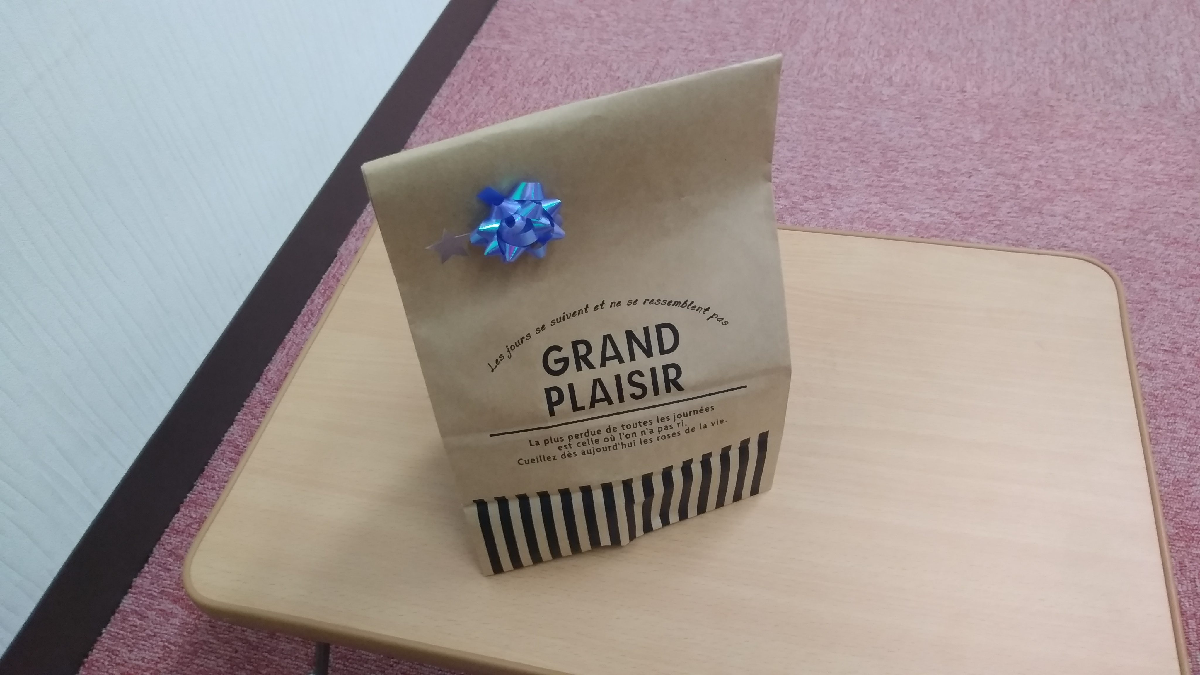 お友だちへのプレゼントラッピングもオシャレに拘って、できたプレゼントはこんな感じです。