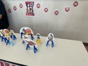 立ち位置の輪っかから出ないように、輪ゴム銃と的の高さを合わせるのが大変そうでしたが、一生懸命に頑張っていました!✊