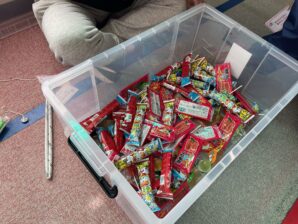 おかしつりでは、磁石のついた釣り竿でお菓子を釣り上げました🍭