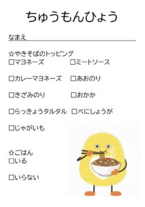 「今日はやきそばとトッピングとごはんを持ってきてもらうよ!」