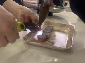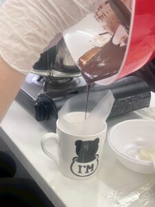 職員の鳥井と一緒にチョコレートを湯煎します🔥