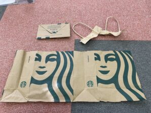 *まずは紙袋を開いて、底面と取っ手を外します✂