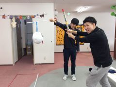 午後の活動は「トリック・オア・トリート」宝探しや海外で有名なピニャータというゲームを行いました!