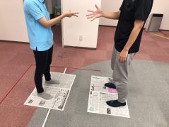 今日の活動は、『バランスとれるかな?新聞のりジャンケン』を