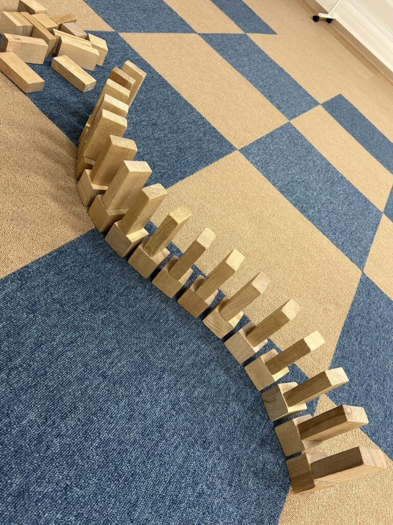四角の上に長四角を乗せた つみきdeドミノ をどれだけ 長く 作れるか?